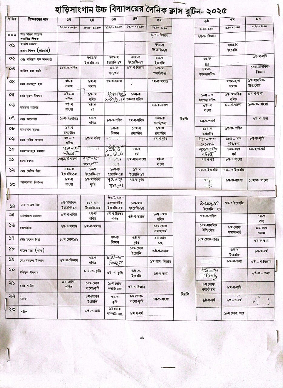 • ক্লাস রুটিন
